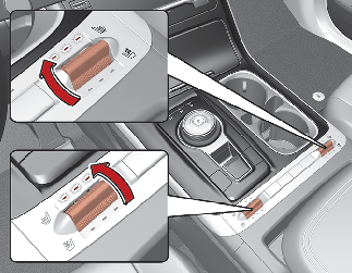 시동 상태에서 해당 열선시트/통풍시트 레버를 앞으로 밀면 강약조절 표시등이 켜져 사용 중임을 나타내고 해당 시트가 따뜻하게 됩니다.