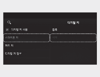 등록된 디지털 키(스마트폰 키)가 없다면 ' 삭제'가 비활성화 되어 있습니다.
