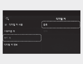 이미 등록된 디지털 키(카드)가 있다면 '등록'이 비활성화 되어 있습니다. 자세한 내용를 참고하여 삭제를 진행한 후 등록을 시도하시기 바랍니다.