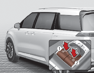 슬라이딩 도어가 완전히 닫히지 않은 상태에서 연료 주입구가 열리면, 슬라이딩 도어가 열릴 수 있어 주유 중 도어와 연료 주입구의 손상이 발생 할 수 있습니다.