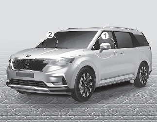 [1,] [2]: 전방위 좌측방 카메라/전방위 우측방 카메라 (아웃사이드미러 하단)