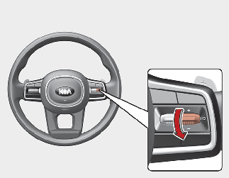 (-) 스위치를 길게 내릴 경우 10의 배수로 설정 속도가 감소됩니다. 계기판 속도 단위를 mph로 설정하면 5의 배수로 설정 속도가 감소됩니다. 약 30 km/h까지만 속도가 설정될 수 있습니다 .