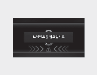 긴급 제동에 의한 정차 시 계기판에 경고 메시지가 표시됩니다.