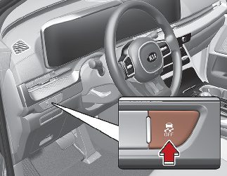 」을 짧게 누르면 차체자세 제어 장치 작동이 정지되며 계기판에 차체자세 제어 장치 작동 정지 표시등「