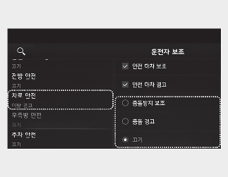 '충돌 경고'를 선택할 경우에는 제동을 도와주지 않습니다.