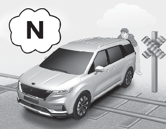 교차로나 건널목의 한 가운데에서 시동이 꺼졌을 때는 변속 위치를 「N」(중립)에 위치시킨 후 주위의 가까운 사람들에게 도움을 받아 차를 밀어내어 안전한 장소까지 이동시키십시오.
