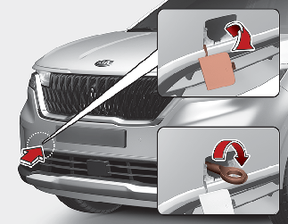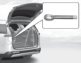 러기지 룸 좌측의 보관함에 있는 견인 후크를 준비하십시오.