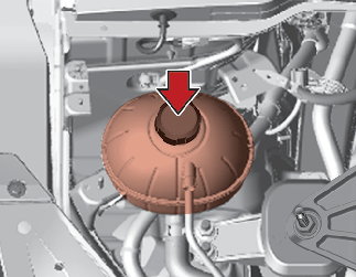 냉각수 보조탱크 캡을 열거나 냉각수를 주입할 때 냉각수가 흘러 내릴 경우 엔진 하부 등 다른 부품에 손상을 줄 수 있으므로 부직포, 두꺼운 헝겊 등으로 캡 주위를 감싼 뒤 천천히 캡을 열고 냉각수를 보충하십시오.