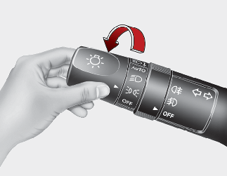 Para comandar as luzes, rode o botão da extremidade da alavanca de controlo para uma das seguintes posições: