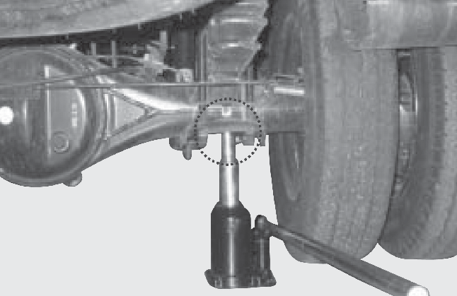 Mova o manípulo do macaco para cima e para baixo até o topo do macaco contactar com o ponto pretendido e suportar alguma carga, elevando o veículo até o pneu levantar do chão. Esta altura é de aproximadamente 30 mm (1,2 inches). Antes de retirar as porcas da roda, certifique-se de que o veículo está estável e de que não existe possibilidade de se mover ou deslizar.