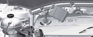 Uważać, aby podczas sprawdzania poziomu lub uzupełniania oleju silnikowego nie dotknąć przewodu elastycznego chłodnicy, ponieważ może być dostatecznie rozgrzany, aby spowodować poparzenia.