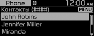 Откройте экран Phone (телефон), поверните регулятор [TUNE] (настройка) на панели управления для выбора Contacts (контакты), а затем нажмите регулятор.