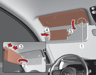 To use the vanity mirror, pull down the visor and slide the mirror cover (4).