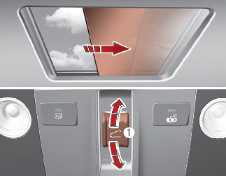 To open the sunshade, pull the sunroof control lever (1) backward to the first detent position.