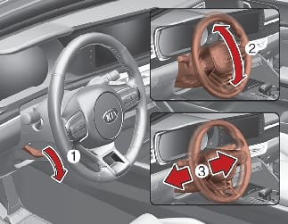 Move the steering wheel, so it points toward your chest, not toward your face. Make sure you can see the instrument panel warning lights and gauges. After adjusting, pull up the lock.