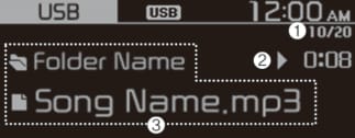 Song information (Media Display): Select information such as Folder/File or Artist/Title/Album to display when playing MP3 files.