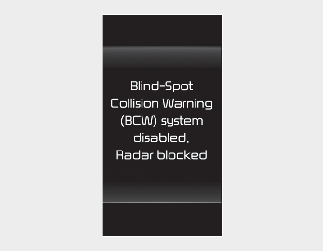 When BCW canceled warning message is displayed in the cluster, check to make sure that the rear bumper is free from any dirt or snow in the areas where the sensor is located. Remove any dirt, snow, or foreign material that could interfere with the radar sensors.