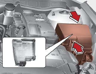After checking the fuse panel in the engine compartment, securely install the fuse panel cover through the audible clicking sound.