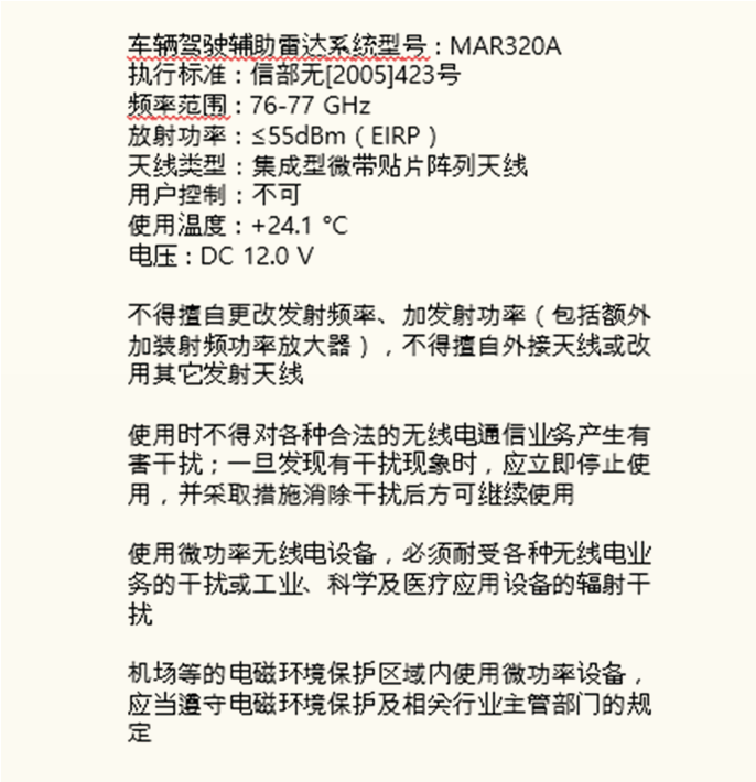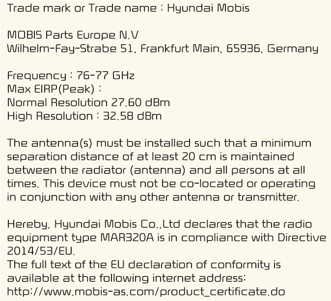 Conformiteit van de radiofrequentie-onderdelen (hoekradar achteraan) (Type A):