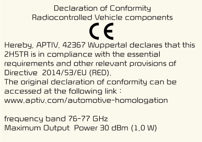 De met radiofrequenties werkende componenten (frontradar) voldoen aan: