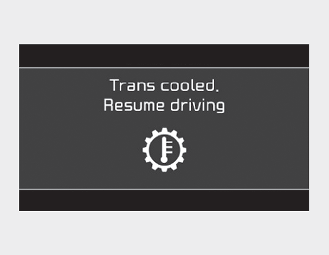 Când este afișat mesajul „Trans cooled. Resume driving.“ (Transmisie răcită. Reluați deplasarea), puteți continua rularea cu vehiculul.