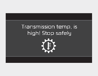 Când se supraîncălzește ambreiajul, modul de protecție de siguranță se activează și indicatorul de poziție a treptei de viteză de pe bord luminează intermitent și se aude un semnal sonor. În același timp, va apărea un mesaj de avertizare „Transmission temp. is high! Stop safely” (Temp. transmisiei este ridicată! Opriți-vă în siguranță) pe display-ul LCD și rularea nu va mai fi lină.