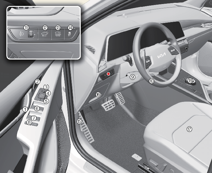 * 실제 차량의 스위치 형상 및 배열은 적용된 사양에 따라 달라질 수 있습니다.