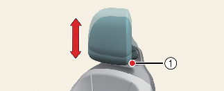 잠금 해제 버튼(1)을 누르고 헤드레스트를 위로 당기십시오.