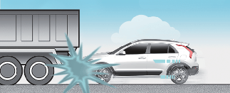 전봇대나 나무와 같은 기둥형 물체와 충돌할 때에도 에어백 전개 신호를 발생하는 충돌 센서에 충분한 충격량이 전해지지 않을 때는 에어백이 작동되지 않을 수도 있습니다.