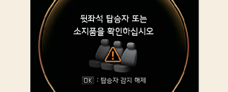 뒷좌석 도어를 열고 닫은 후에 시동을 끄고 운전석 도어를 열경우 계기판에 "뒷좌석 탑승자 또는 소지품을 확인하십시오" 경고 메시지가 표시되면서 경고음이 울립니다.