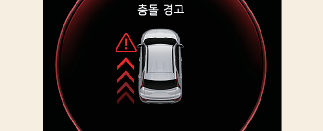 사이드 미러(실외 미러) 경고등이 깜빡이고 경고문과 경고음을 통해 충돌 경고를 알립니다.