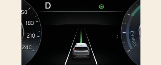 양쪽 차선 또는 선행 차량을 인식하고 차량의 속도가 160 km/h 이하인 경우 차로 중앙을 유지하며 주행하도록 조향을 도와줍니다. 계기판 등에 표시등 「