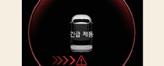 긴급 제동에 의한 정차 시 계기판 등에 경고문이 표시됩니다. 안전을 위해 즉시 브레이크 페달을 밟고 주변 상황을 확인하십시오.