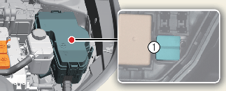 엔진룸 퓨즈 박스에 설치된 퓨즈 교체용 클립(퓨즈 뽑개)(1)으로 단선된 퓨즈를 제거하고 같은 용량의 예비 퓨즈를 손으로 단단히 삽입하십시오.