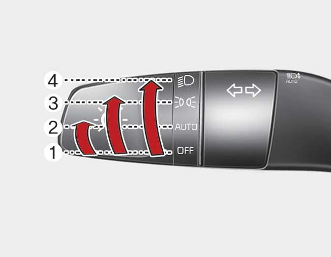 조명 스위치의 끝을 잡고 돌리면 다음과 같이 작동합니다.
