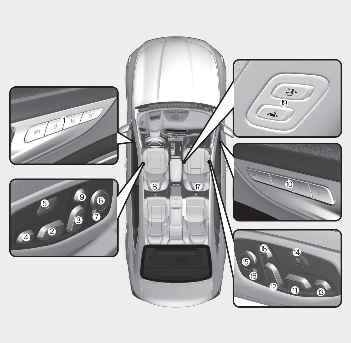 좌석의 전후 위치, 각도, 높낮이 등을 조절하여 올바른 운전 자세가 되도록 하십시오.