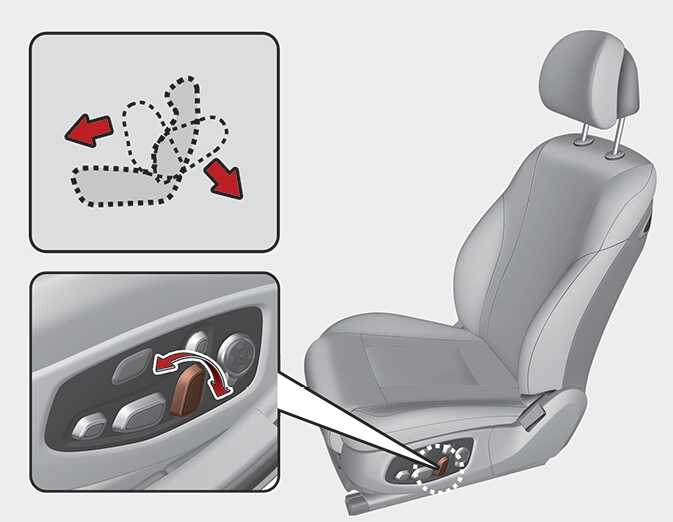 각도 조절 스위치 윗부분을 앞으로 움직이면 등받이가 앞으로 세워지고, 뒤로 움직이면 등받이가 뒤로 젖혀집니다.