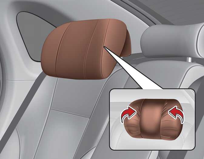 윙아웃 헤드레스트 (사양 적용시) ORJ031027 헤드레스트의 좌우를 손으로 잡고 안쪽으로 당겨 사용할 수 있으며 탑승자의 머리를 지지해 줍니다. 사용하지 않을 때는 원래대로 되돌려 주십시오.