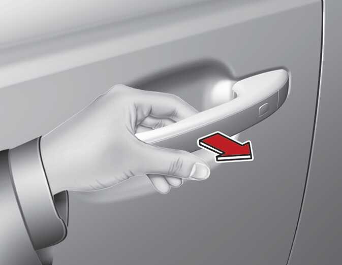 세차나 폭우 시 도어 손잡이 센서가 잘못 인식해 도어가 잠금 또는 잠금 해제될 수 있습니다.