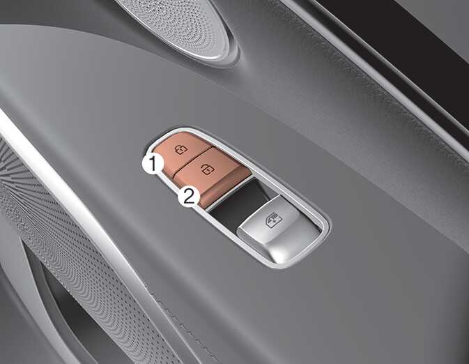 운전석 또는 동승석에 있는 잠금 버튼(1)을 누르면 모든 도어가 잠깁니다.