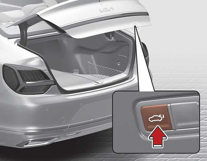 버튼을 누르면 트렁크가 닫힙니다. 닫히는 도중에 버튼을 짧게 누르면 원하는 위치에 트렁크를 정지할 수 있습니다.