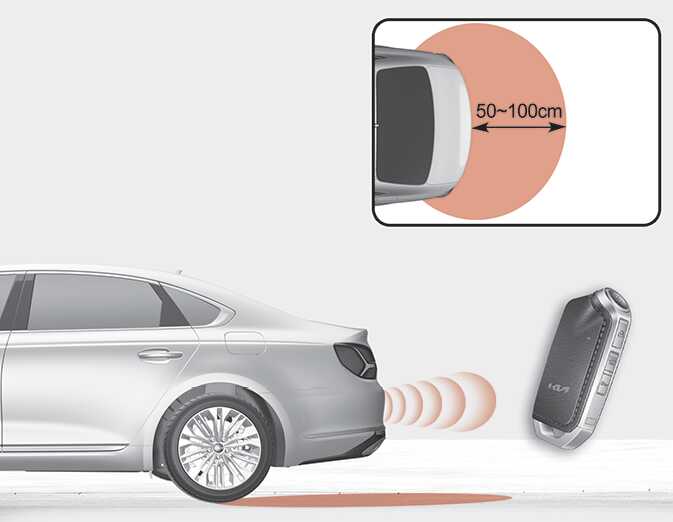 트렁크 후방 약 50~100 cm 이내에 스마트 키가 감지되면 웰컴 경보가 작동하면서 스마트 트렁크 기능이 작동됩니다.