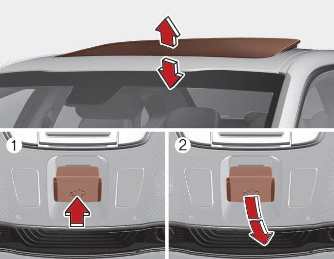 선루프 스위치를 위쪽으로 누르면 선루프 글라스가 틸트 상태로 열립니다.