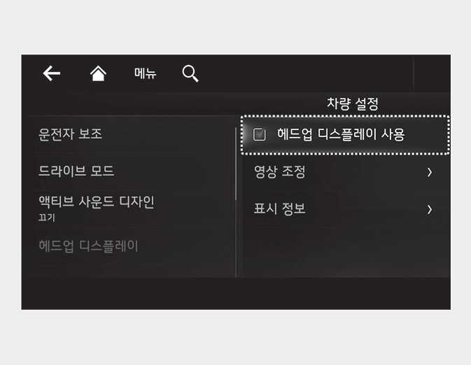 헤드업 디스플레이 설정 메뉴