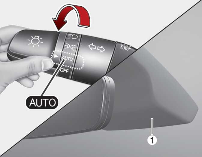 조명 스위치를 AUTO 위치로 선택하면, 센서(1)가 감지하는 외부의 조도(밝기 정도)에 따라 조명이 켜지거나 꺼집니다.