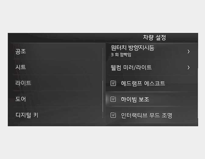 하이빔 보조를 설정할 때에는 반드시 안전한 곳에 정차한 후 조작하십시오.