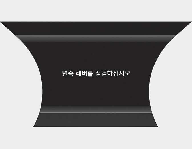 변속 레버를 점검하십시오 ORJ041475 변속 레버의 주요 기능에 문제가 생겼을 때 표시창에 경고문이 표시됩니다. 가급적 빠른 시일 내에 자사 서비스센터나 서비스협력사에서 점검을 받으십시오 .