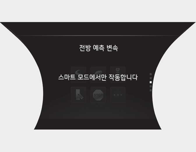 아이콘 켜짐과 함께 아이콘 상단부에는 예측 변속을 위해 감지된 상황이 문구로 표시됩니다.