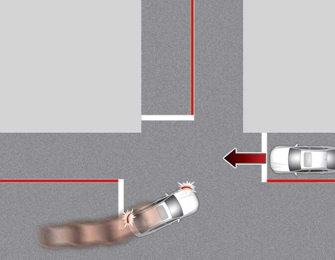 교차로 대향차 대응 기능 ORJ041539 교차로에서 방향지시등 스위치를 내리고 좌회전할 때 맞은편 인접 차로에서 접근하는 차량과의 충돌 위험이 판단되면 충돌하지 않도록 제동을 도와줍니다.