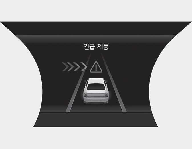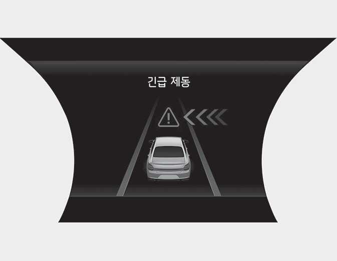 경고문, 경고음, 스티어링 휠 진동을 통해 긴급 제동을 알립니다. 제동 제어가 작동하여 전방 교차 차량과의 충돌을 피할 수 있도록 도와줍니다.